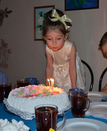 Одев на себя все сразу' она принялась скакать по дому. За играми мы и не заметили' как пролетело время. А потом гости' игры' много игрушек' торт со свечами...