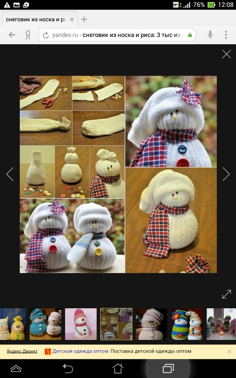 Снеговики из носка и риса