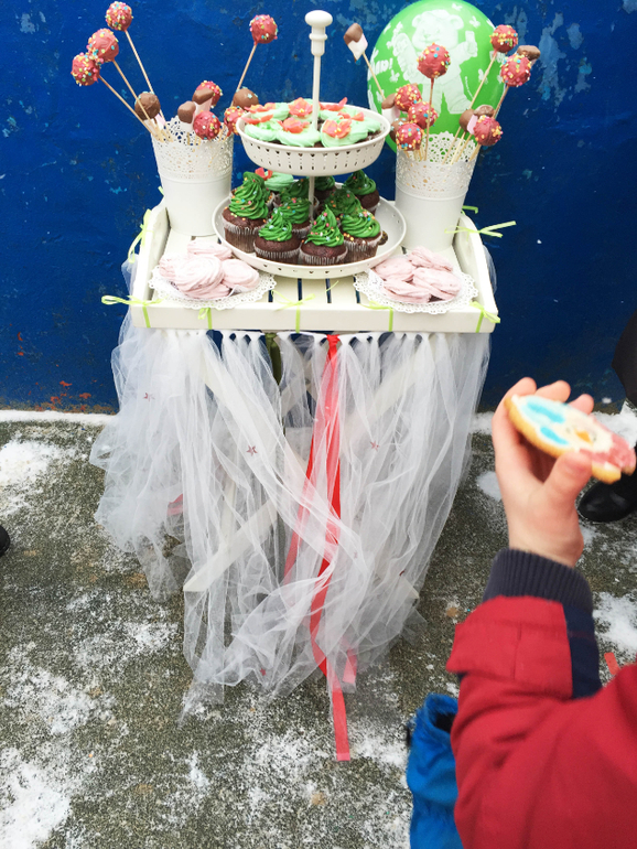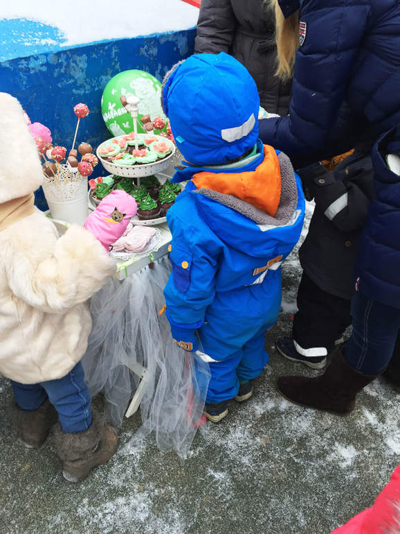 После было торжественное вынесение сладкого стола (капкейки, домашний зефир, попсы, мармышки в шоколаде), горячие какао и чай. Сладости все делала сама и оформляла тоже, Софа активно помогала. Отдельно была вынесена огромная тарелка с расписными пряниками. Небольшая тишина, дети жуют, откусывают пряничным снеговикам головы.