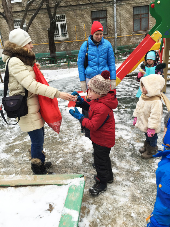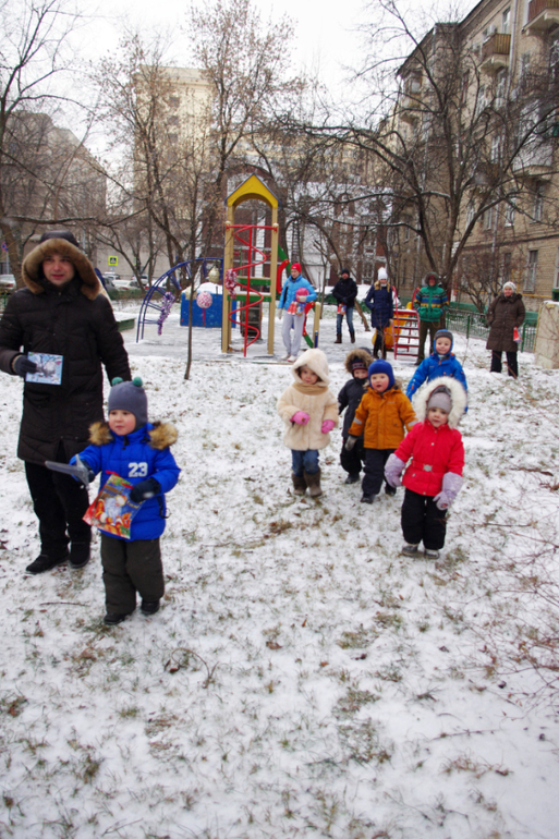 Тем не менее погода не подвела, дождя не было. Гости начали собираться в 12 и чтобы было не скучно и дети не мерзли на время сбора им было дано первое задание - наделать снежков и сложить в определенном месте. Это они с удовольствием сделали. Всем детками были вручены праздничные пакеты для трофеев.