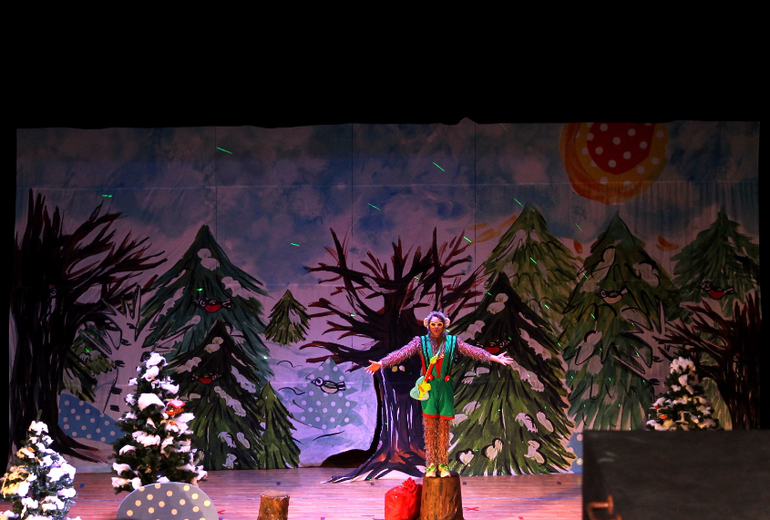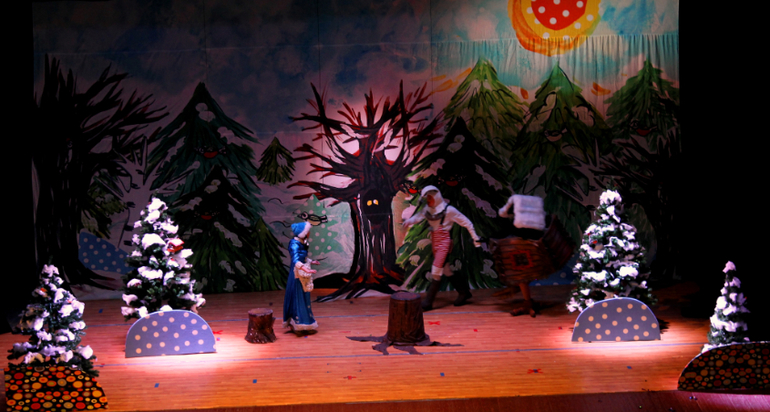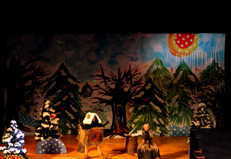 После елки все прошли в зал на спектакль знакомиться с Жаконей.