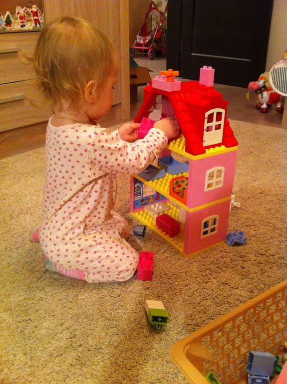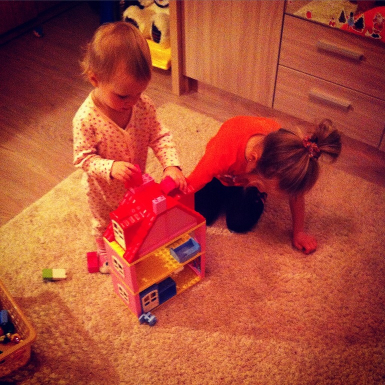 Варя копируется Аню во всем! Она ведь еще не понимает сути роливых игр, но видя как Аня фигурками "ходит"по дому, делает тоже самое. Вообще, вторым детям раздолье в развитии: столько игрух, которые будь он первым, даже в голову не пришлось бы купить в силу возраста.