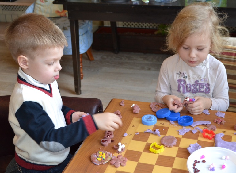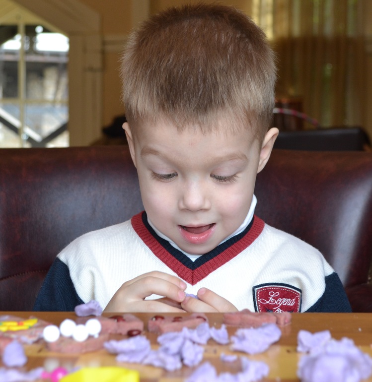 Возиться с пластилином всем очень понравилось, и все с радостью поддержали мою дополнительную игру по нахождению сюрпризов в тесте.