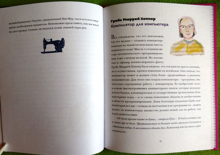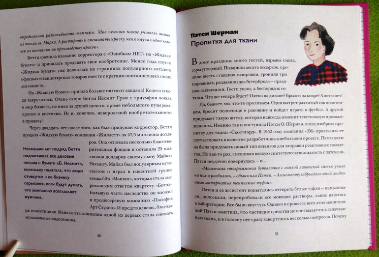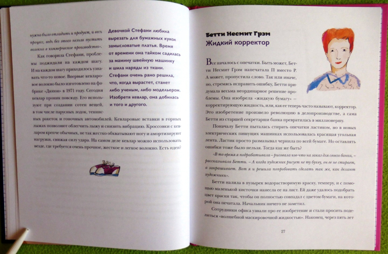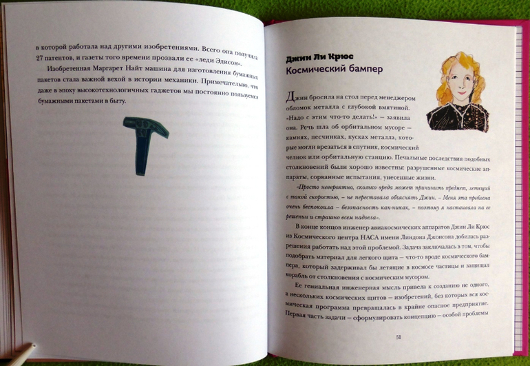 Принято считать, что изобретения ― это занятие для мальчиков. Но героини в книге от издательства «Манн, Иванов и Фербер» «Придумано девочками. Истории о выдающихся изобретательницах» доказывают обратное. Новая идея может прийти в голову любому человеку, и нужно только суметь ее воплотить в жизнь. Возможно, эта книга послужит примером, подарит вдохновение и придаст смелости юным изобретательницам.