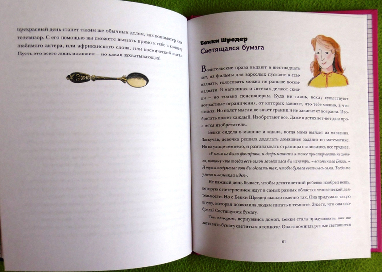 Десятилетняя Бекки Шредер придумала такую штуку, которая позволила людям писать в темноте. Светящуюся бумагу. Узнав об изобретении Бекки, сотрудники Национального аэрокосмического агентства НАСА прислали ей письмо, в котором интересовались, не работала ли она у них в прошлом. Никто и подумать не мог, что светящуюся бумагу изобрел ребенок.