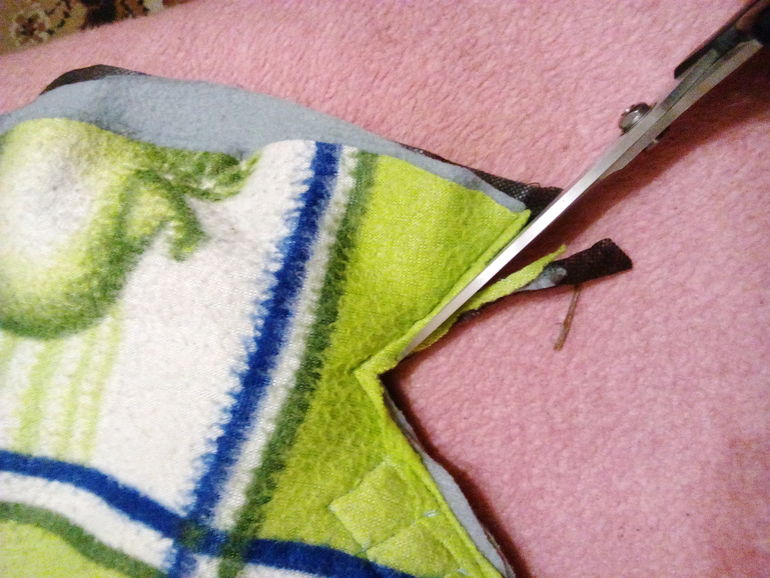 Делаем в уголках надрезы, чтобы при выворачивании не тянуло.