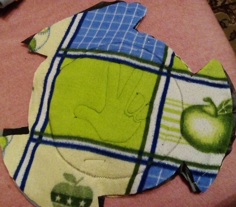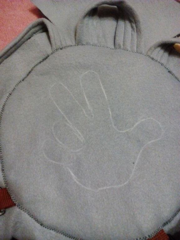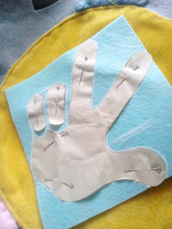 Вырезаем из детали 2 ладошку и переводим ее на фетр (можно и на флис).