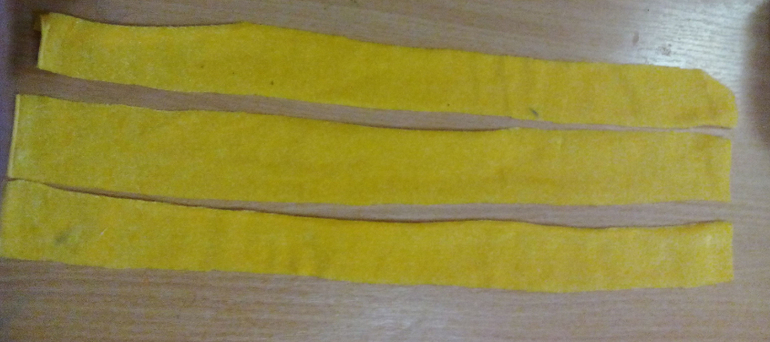 Выкраиваем три детали для отделки. У меня они получились длиной около 50 см, шириной - 5 см.