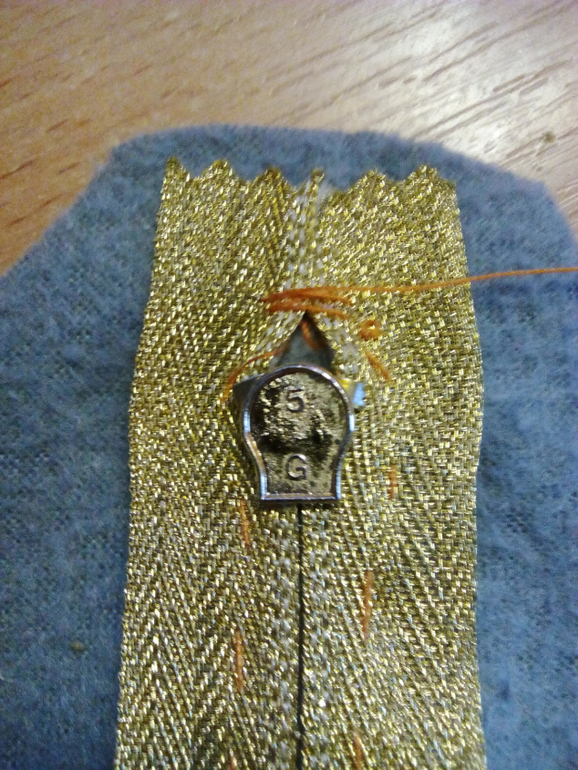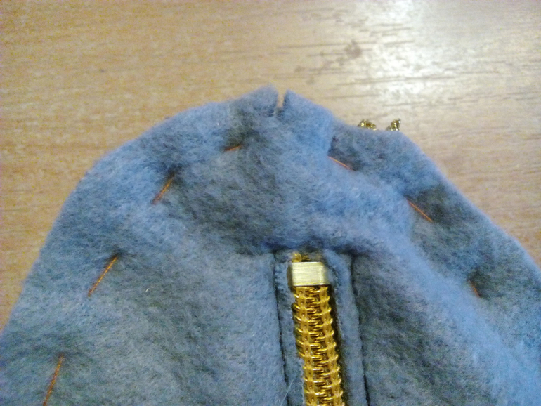 Возле замочка прихватываем несколькими стежками, чтобы молния не расходилась.