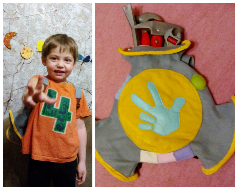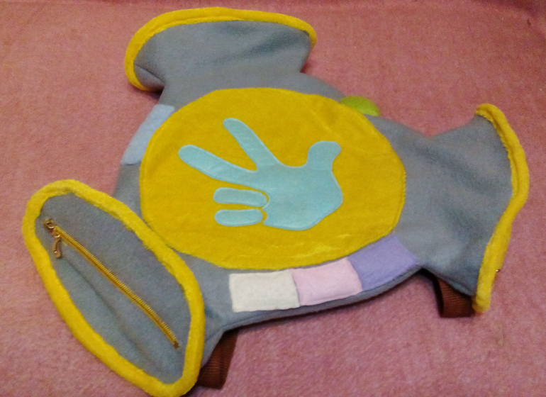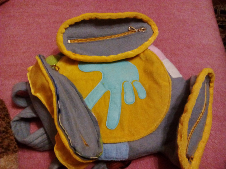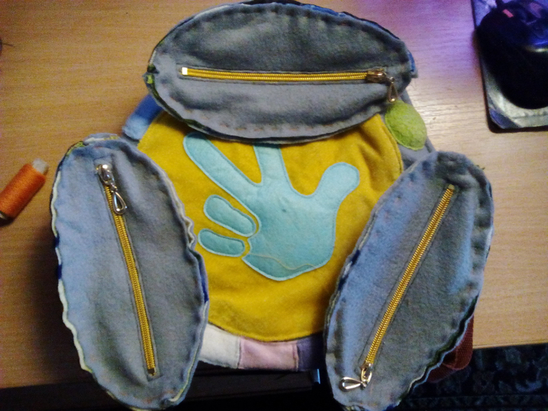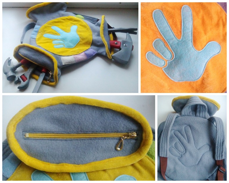 Шила я по этому мастер-классу http://www.livemaster.ru/topic/1243263-shem-detskij-ryukzak-pomogator. Шьется он гораздо проще, чем предыдущий, но, несмотря на внушительные размеры помогатора, положить в него можно только небольшие вещи, либо большие но узкие, дальше будет понятно почему.