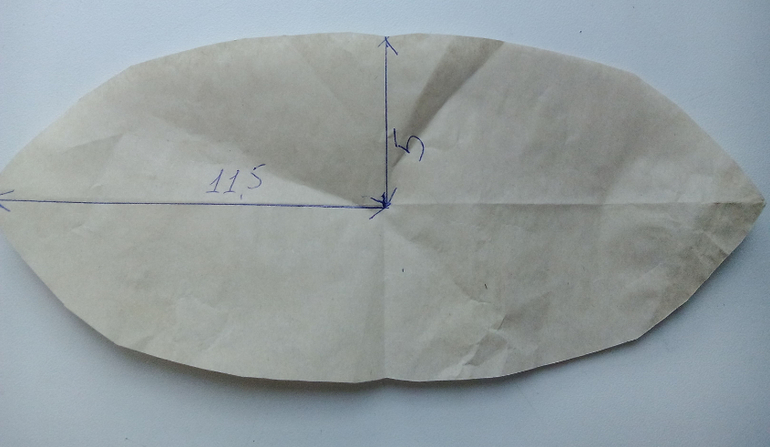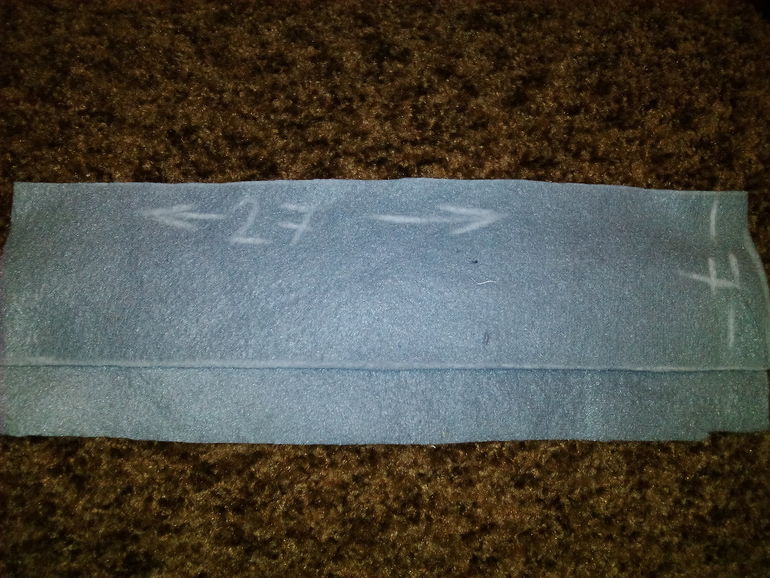 Еще перед тем как убрать бумажную выкройку с ткани нужно отметить середину наших деталей. Если этого не сделали раньше, как я, то делаем сейчас. Складываем детали и отмечаем середину.