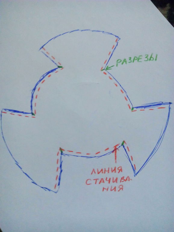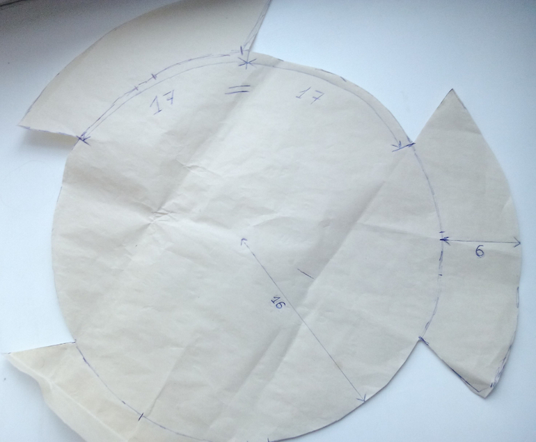 Кривенько нарисовала в каких местах сшиваем и делаем надрезы. Три отверстия остаются на зашиты, выворачиваем через одно из них.