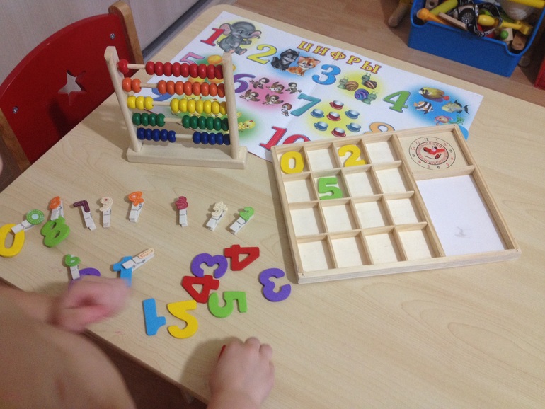 Развивающие игрушки (пазлы, вкладыши, конструкторы, мозаики)Изучаем цифры с нашим счетным наборчиком и цифрами-прищепками, все просто, все в игре, сыну очень нравится:-)
