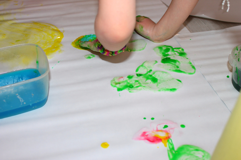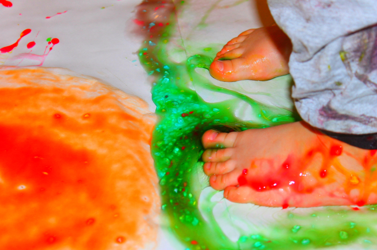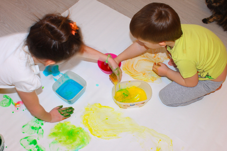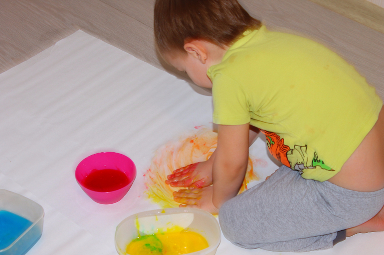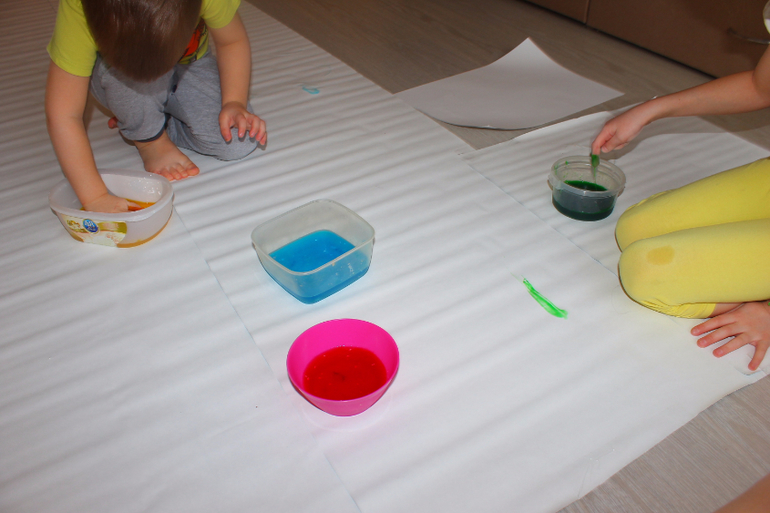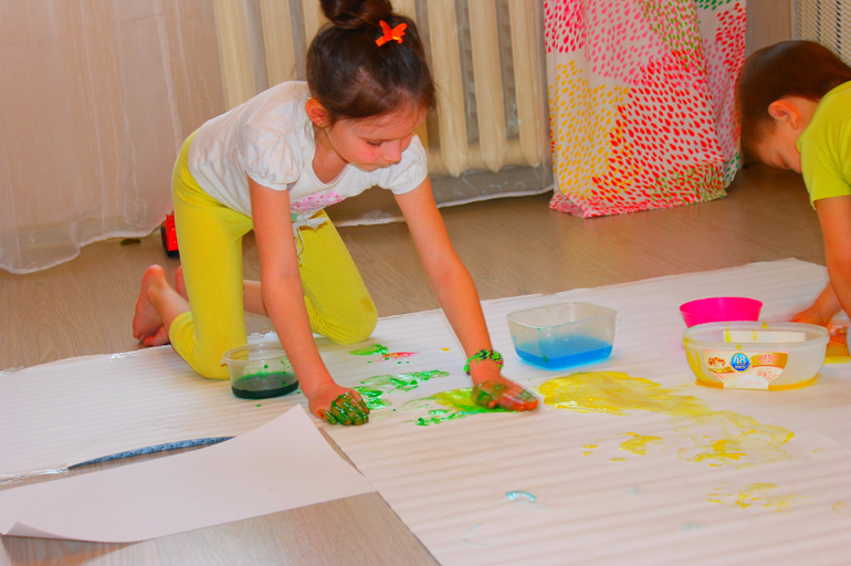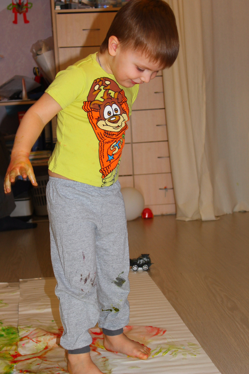 Рисовать можно в ванной,я думаю, там и смыть легко потом все за собой.Но у нас остались обои и жажда масштаба.