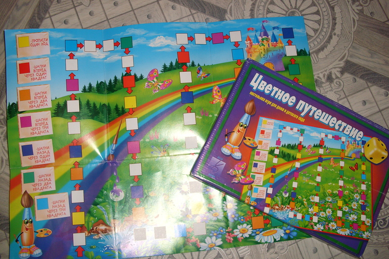 После поиграли в игру - ходилку. на какой цвет попадали Арина его называла, ну или я подсказывала( учим цвета, она плохо знает).