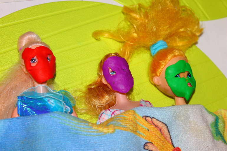 Сашино развлечение. И бусы-браслеты делала и маски барби))
