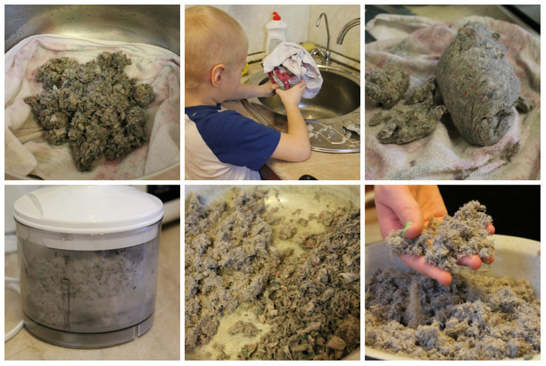 5. кладем любую тряпку, полотенце, марлю в раковину и вываливаем туда смесь. Тщательно отжимаем.