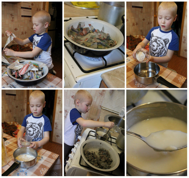 ниже опишу процесс приготовления массы для лепки из газет .