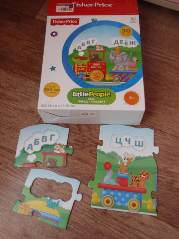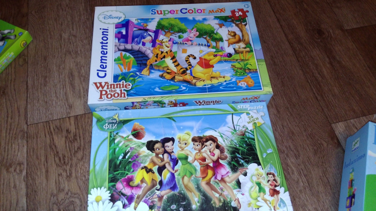 Пазлы пока особо не уважает, составляет только крупные и не более 30 частей, правда из последних поезд ей понравился, собирает его сама.