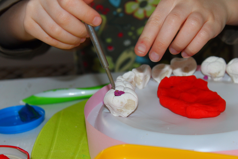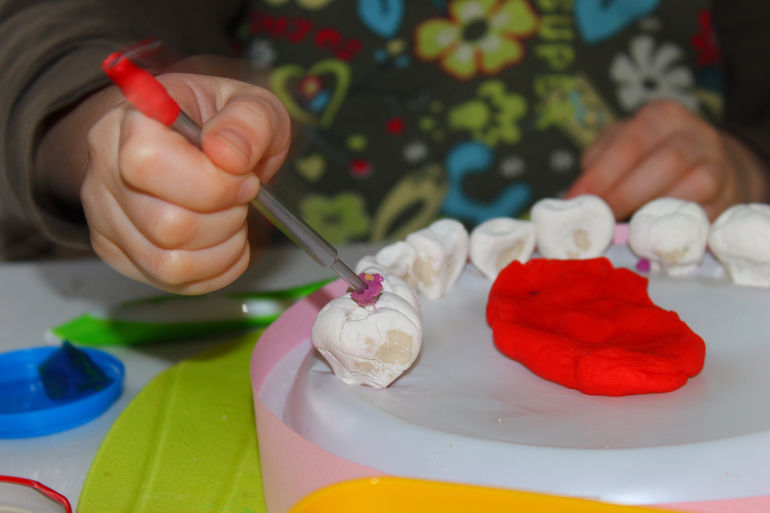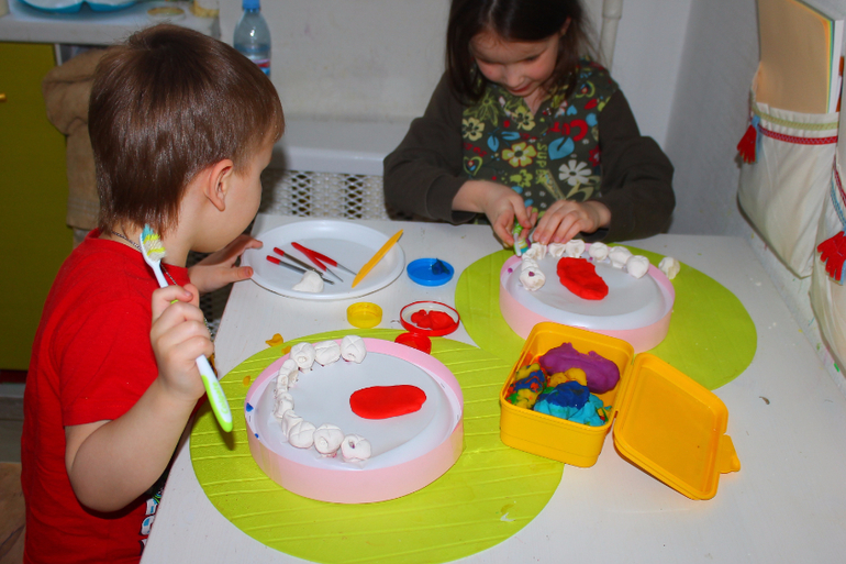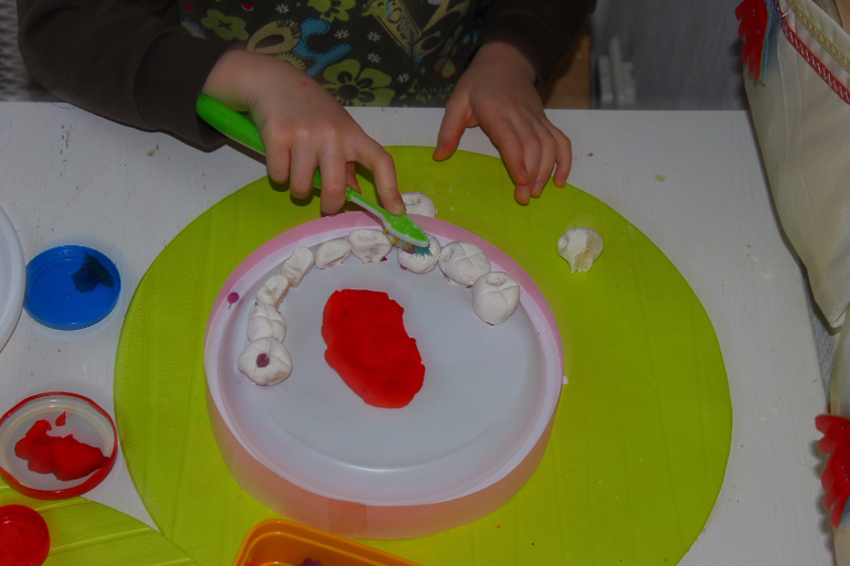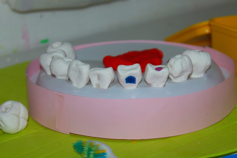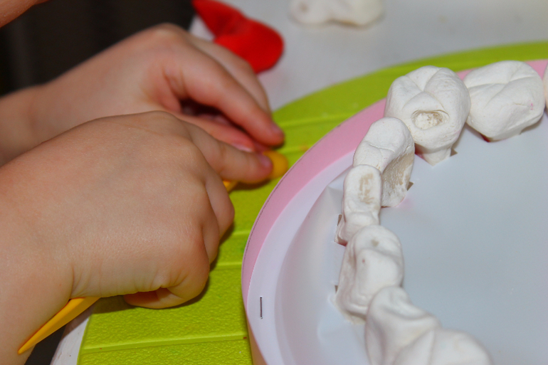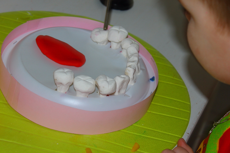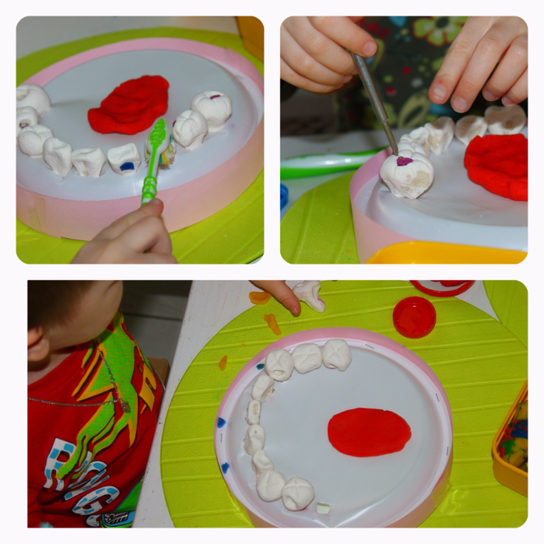В качестве стоматологических инструментов- пинцеты из Фикспрайса,папины маленькие отвёртки, стеки, ватные палочки и мягкий пластилин для пломб,протезов и пр.