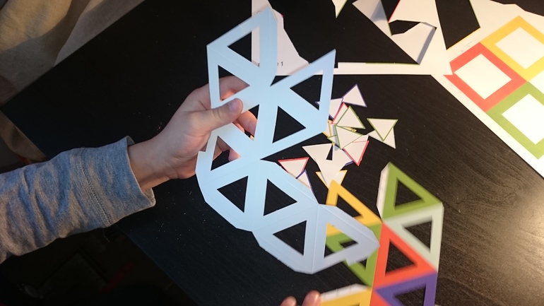 Геометрические размеры готовых многогранников, собранных из набора подобраны таким образом, что каждый из них может быть вписан в сферу диаметром 110 мм