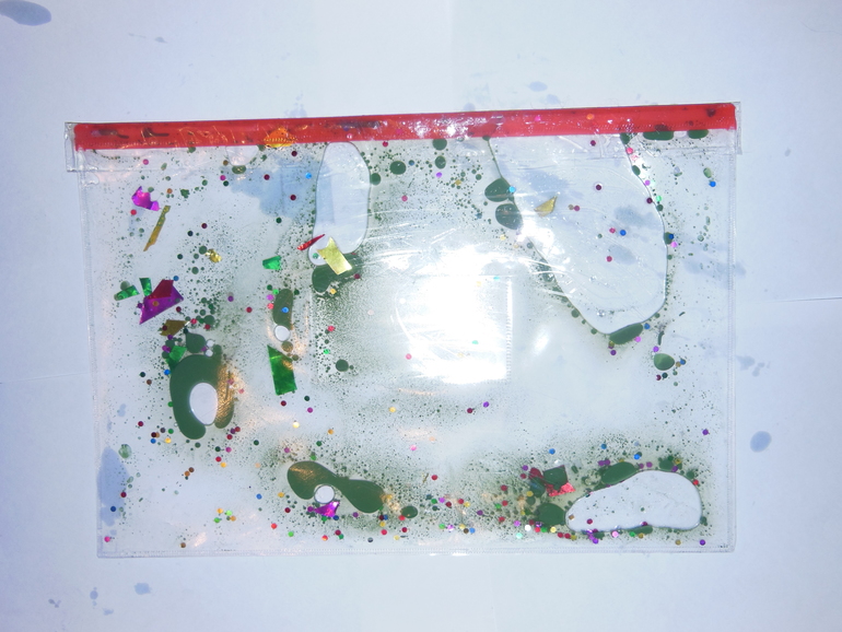 Детское масло, разведенная гуашь, блестки и радости у ребенка море)