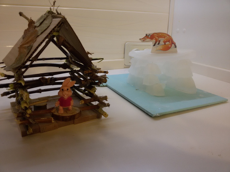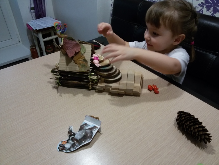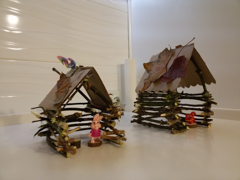 Проигрывая сказку, дочь решила, что нужно обязательно построить второй дом для лисички, чтобы она не выгоняла зайку! И, с очередной прогулки мы вернулись с охапкой палочек и веточек!
