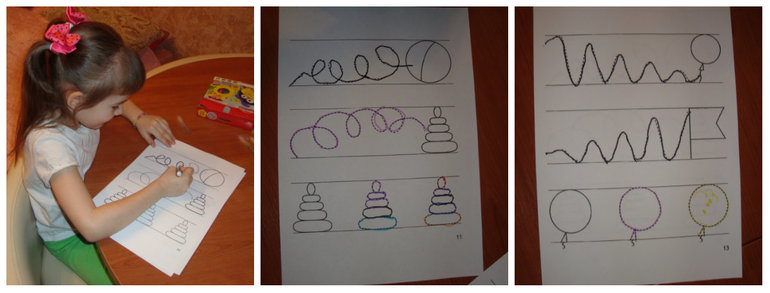 Потом Женя захотела , чтобы все игрушки на свете были ее. Шестое задание- пишем прописи.