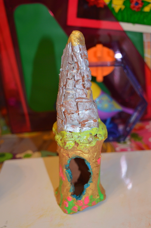 ну а позже дома он был раскрашен акриловыми красками и превращен в домик для фей и для гномов. Возможно, что и летним мини-дворцом для принцесс он тоже поработает ( так сказала Анютка после того, как глиняный домик отправился сушиться)