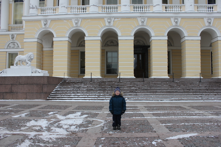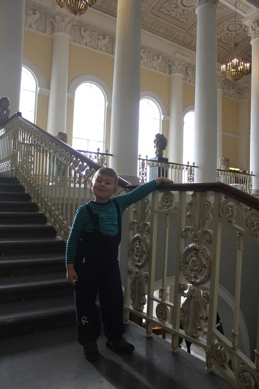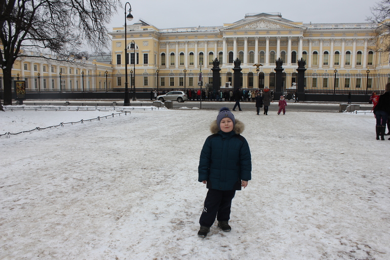 Куда пойти с ребенком? (Все о досуге с ребенком и семьей)Впереди тогда еще были три выходных, а это значит была возможность съездить и погулять. Давно я хотела свозить Славу в Русский музей. Когда на прошлой неделе ходили с мужем в театр, зашли в музей, разузнали расценки и все такое. Спросили можно ли с коляской? Ответ был:" Да конечно!"... Забегу вперед. С коляской нельзя. Это не удобно. Везде лестницы и это было бы реально мучение. Сделаны на лестницах спуски для инвалидов, но там крепления для их колясок и лифты которые попросту закрыты. Так что я нисколько не пожалела, что мы поехали вдвоем. Да и папочке нашему нужно было отдохнуть, а то каждый день за рулем!
