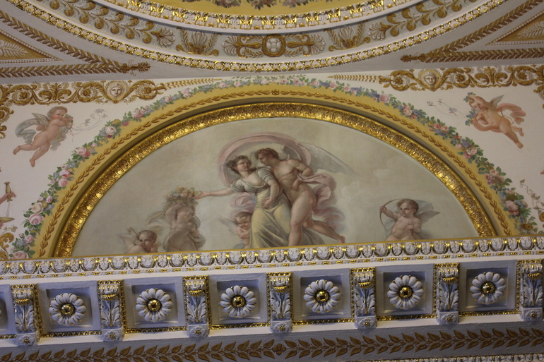 В зале Бенуа. Фронтон дома, Славик был так удивлен... Рассматривал с большим интересом.. Окна, кухонную утварь, наряды...