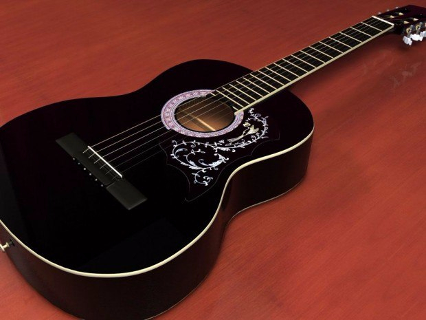И еще большой популярностью у нас пользуется папина гитара! Очень любит ее слушать