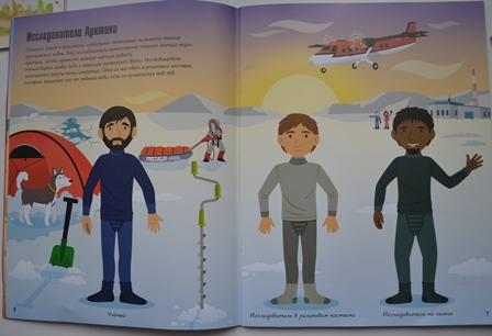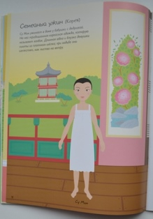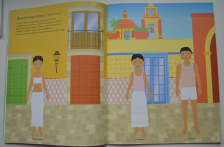 «Одежда со всего света». Здесь не просто представлены костюмы разных народов или стран, а связанные с праздниками в каждом конкретном случае. Например, ребенок узнает, как выглядят жених и невеста в Японии, как одеваются на карнавал в Мексике, что носят оленеводы из Норвегии,…