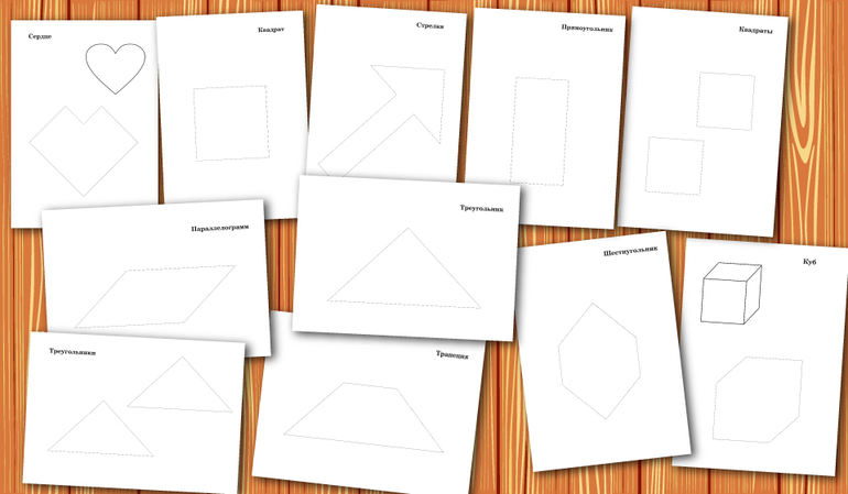 В комплекте также несколько шаблонов для самостоятельного изготовления Танграма 10см*10см.
