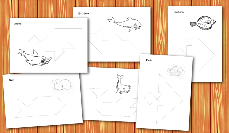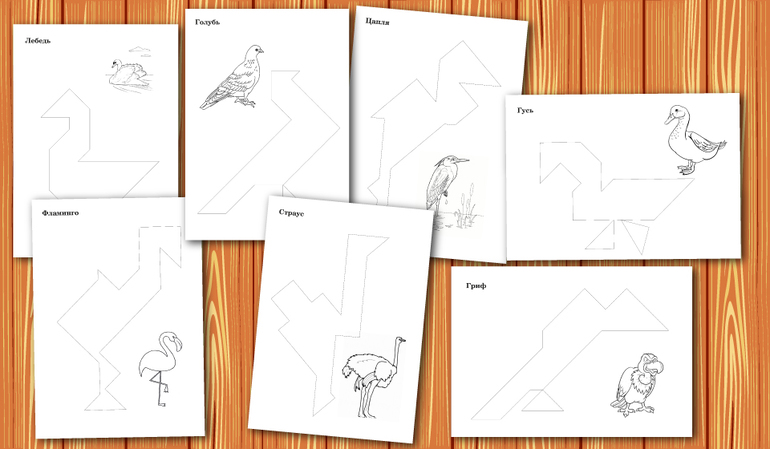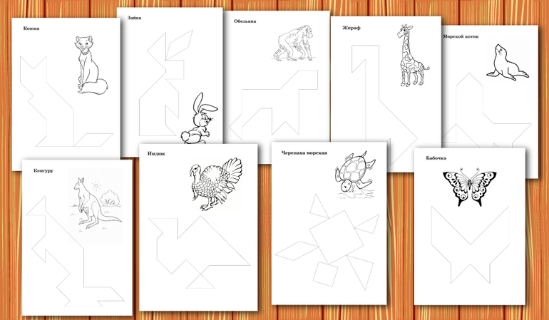 Контурные схемы к Танграм для наложения.