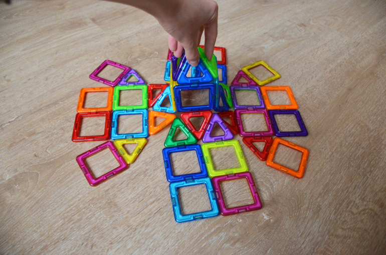 Вообще, далеко не всегда получается собирать так идеально ровно и красиво, как на обзорных видео, но подравнивается всё достаточно легко) Также написано что, магниты в детальках крутятся и меняют положение. В принципе, так оно и есть, но иногда бывает, что полюса сходятся не моментально и деталь лучше повернуть, например, другой стороной.