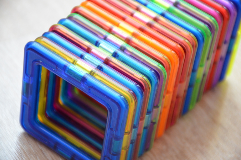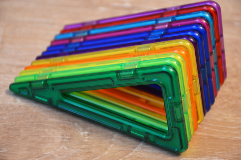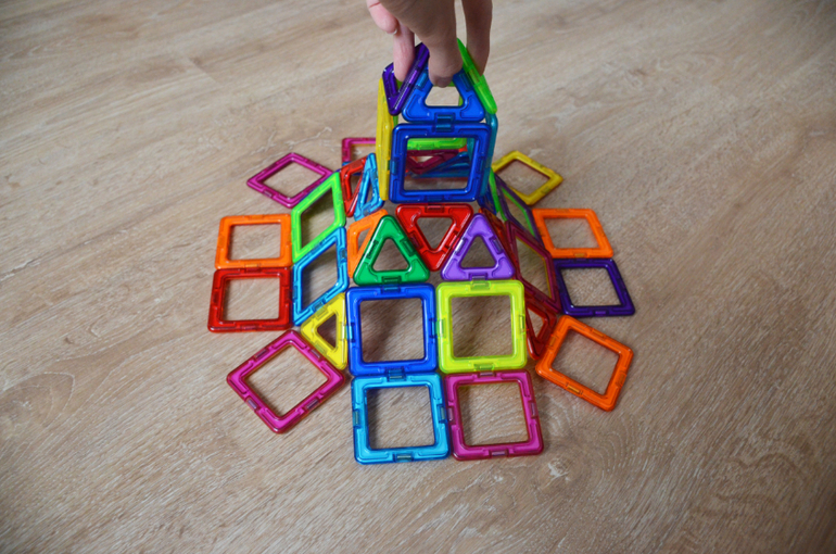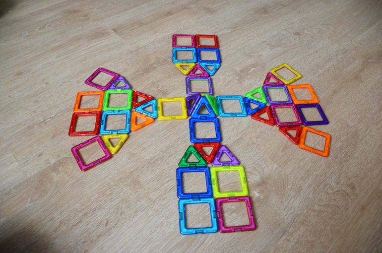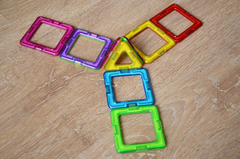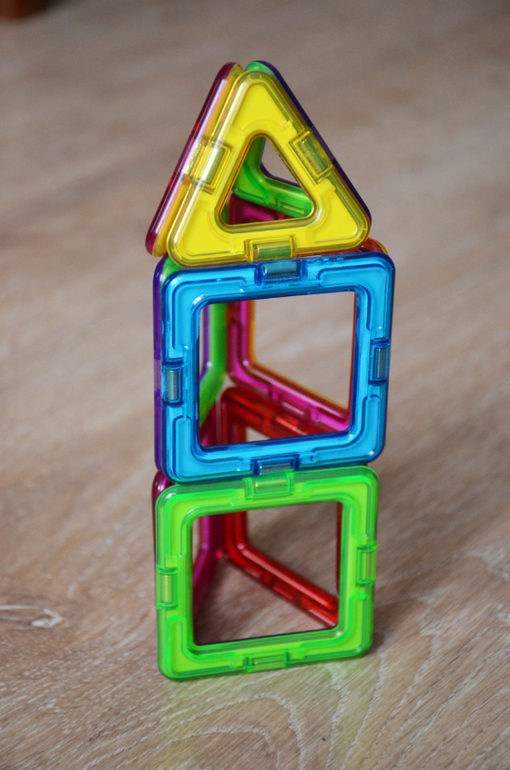 Плюс к нему я сразу дополнительно заказала комплект из равнобедренных треугольников (12 шт) и пару колес для того, чтобы строить машинки. А пособирав несколько дней всё это дело, я решила, что квадратов и треугольников определенно недостаточно и заказала дополнительно ещё и их в количестве 12 штук того и другого)) Всё вместе получилось примерно на 13 200 рублей. Лучше бы не считала