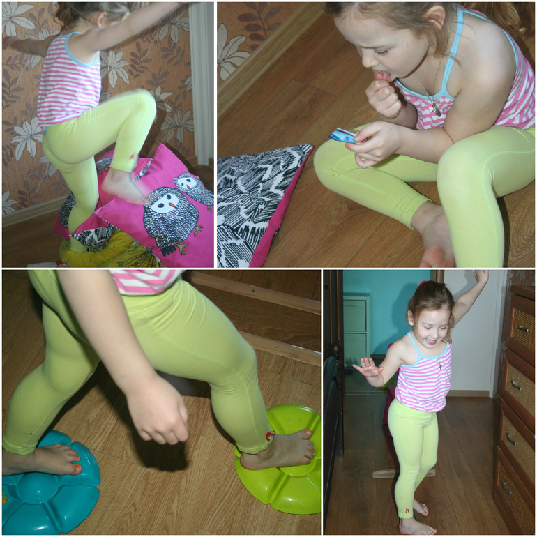 Но мы продолжаем наше путешествие на груше, и вот уже высадились на Таинственном острове, теперь осталось только разгадать его тайну. Камилку ждала полоса препятствий из подручных средств: под стульями нужно было проползти, по швабре - пройти, по тарелка - проскочить, пропрыгать в мешке и, наконец, добраться до горы подушек, на которую нужно было забраться без рук. Под подушками пряталась картинка-подсказка, куда дальше держать путь. Это было фото кусочка декоративной тарелки, которая висит у Камилки в комнате. Этот тип квеста очень любопытный, учит обращать внимание на детали знакомых предметов.
