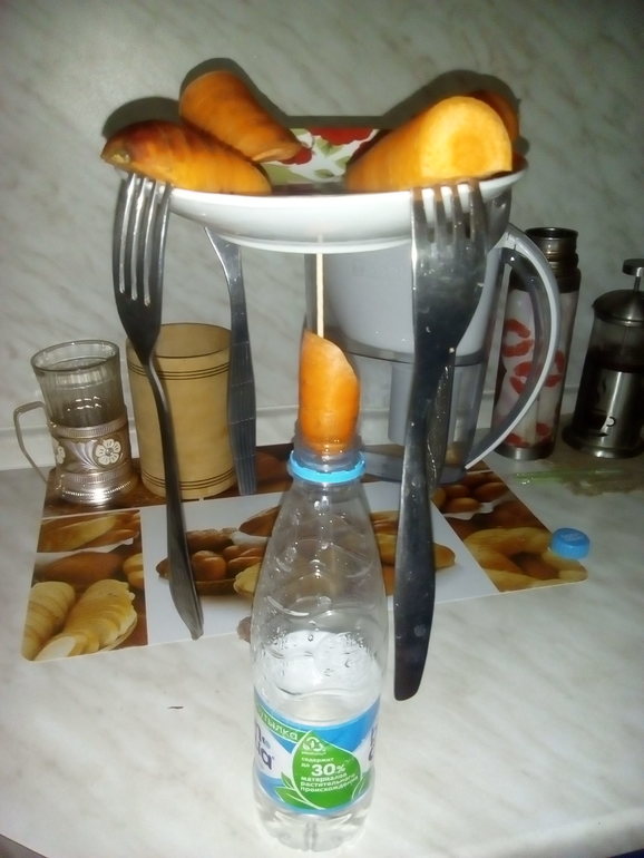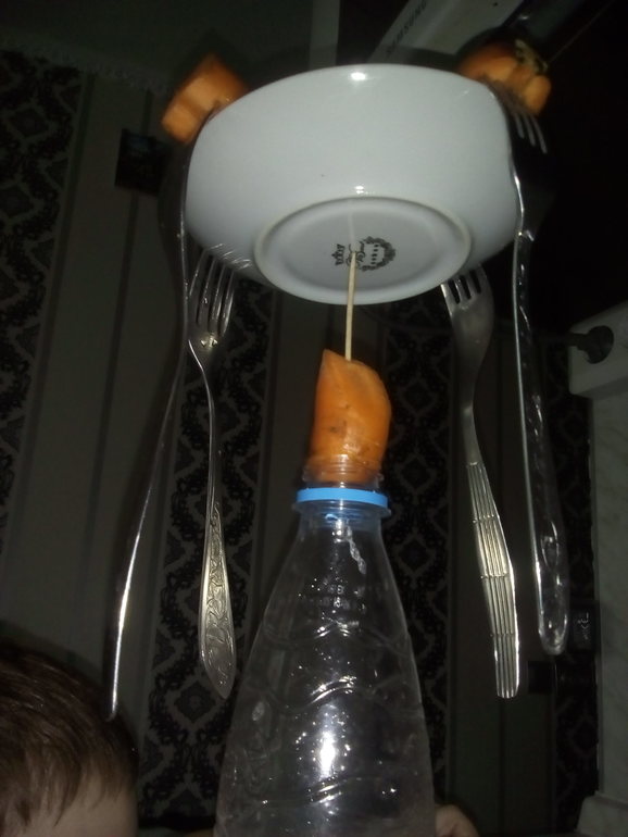 Вся конструкция стоит на обычной зубочистке. Как? А вот так! Ищем баланс и ни каких фокусов!