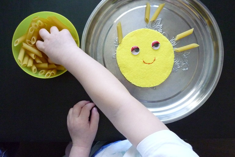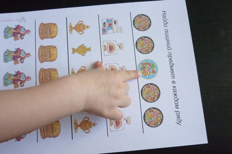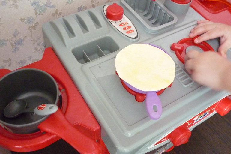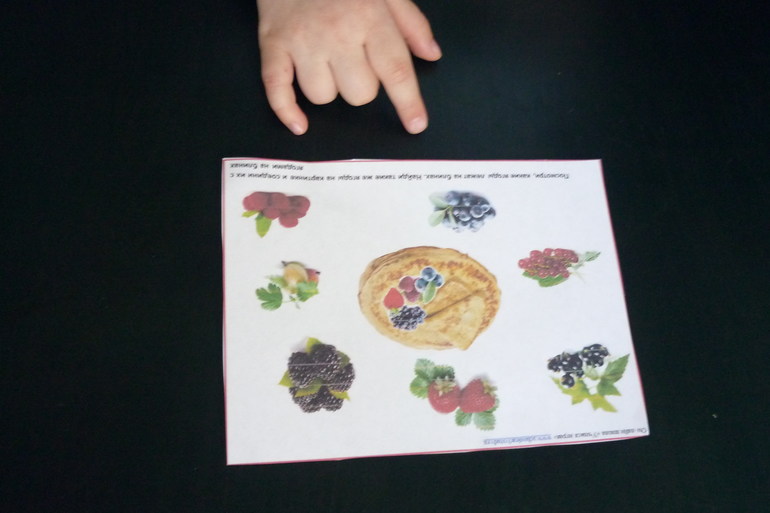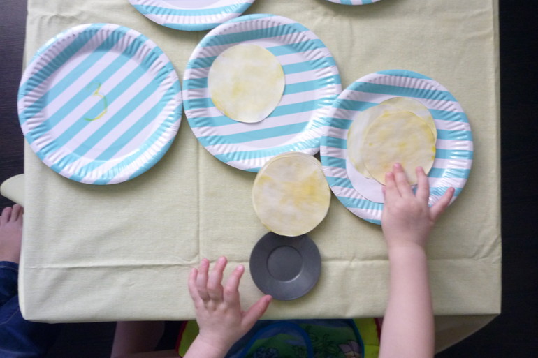 На тарелочках написаны циферки, Сашульке надо разложить необходимое количество блинов для гостей