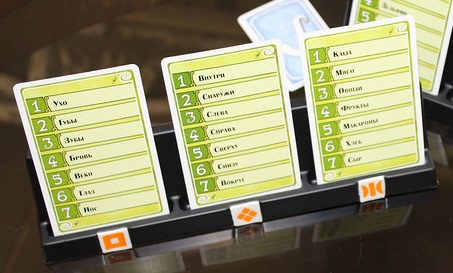 А суть игры простая. Игроки должны нарисовать слово или словосочетание на одной из карт, одновременно пытаясь угадать, что рисуют соперники. Карточки с заданиями располагаются на специальных подставках. В комплекте 4 стопки карточек разного цвета по уровню сложности. Мы начали с простых, хотя не так то просто нарисовать секунду или 1 грамм. Пока не представляю, как мы будем изображать Встречу, Дипломатию,Честность, Вежливость, Историка, Дипломата, Это, Сейчас, Тон или к примеру, Форму. Угадывать будет не менее весело. И все это на скорость! Ведь первым, выполнившим задание, нужно успеть схватить бонусные жетоны.