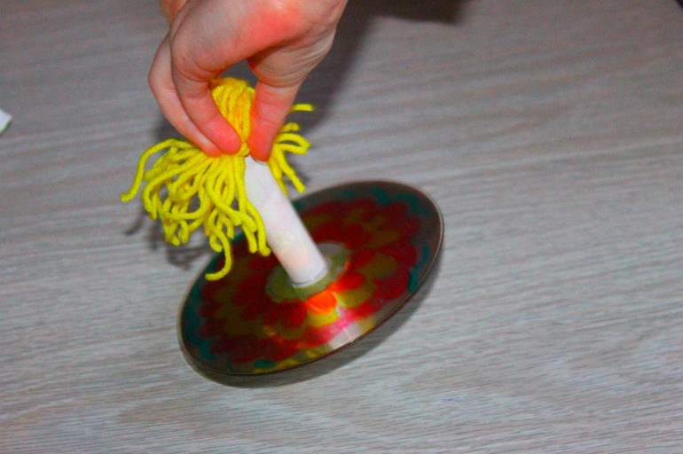 - попробовать закрутить волчок в воздухе, если все сделано правильно, то упав на пол волчок продолжит кружиться.
