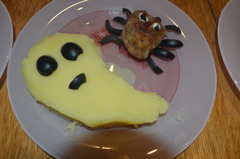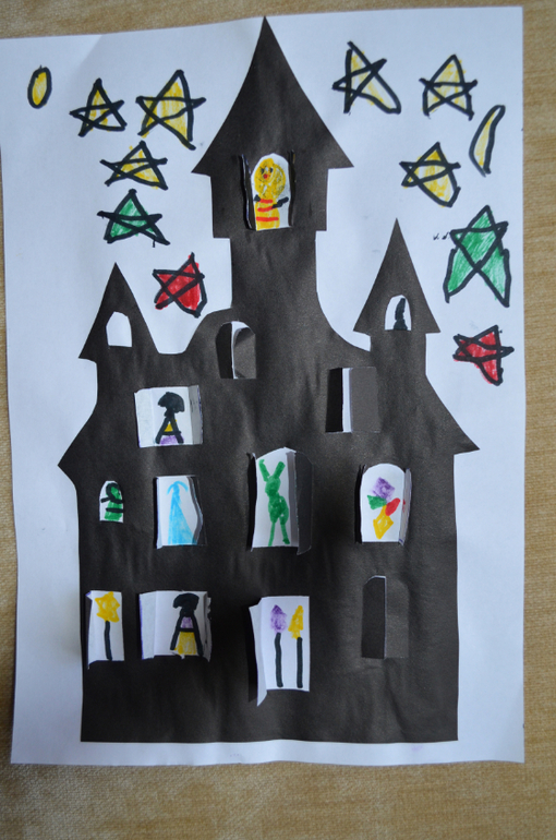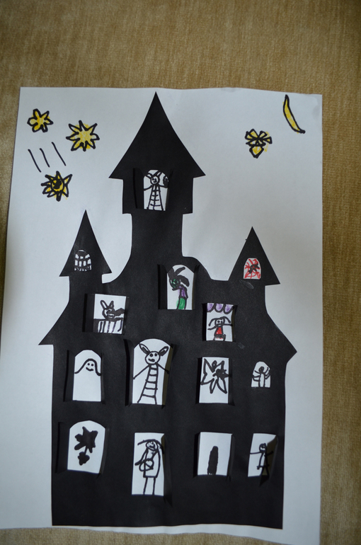 После еды уже все пошло не по плану, девочки захотели просто поиграть, бегали с покрывалом-привидением. Потом приехала одна из мам девочек на подмогу, мы попили чайку и продолжили запланированные задания: