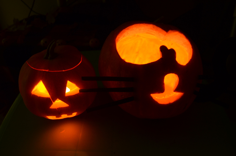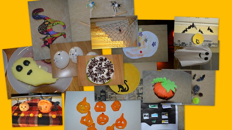 А еще бросали кубик с геометрическими фигурами и рисовали выпавшую фигуру на месте глаз, рта и носа для тыквы, украшали по собственному желанию.
