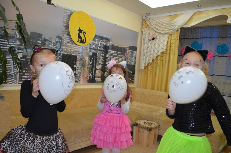 Легенда была такая: Я, как ведущая, собрала девочек, чтобы отпраздновать праздник Хэллоуин, и испечь с ними волшебное печенье, но Королева черных кошек украла формочки для волшебного печенья, и вернет их, если девочки помогут ей приготовиться к балу черных кошек и выполнят некоторые ее задания.