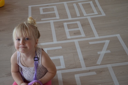 Даже муж оценил мои старания. Нет-нет, да и пропрыгает вместе с нами.Так что не только на улице можно рисовать мелом на асфальте игры нашего детства, НО как оказалось и дома.