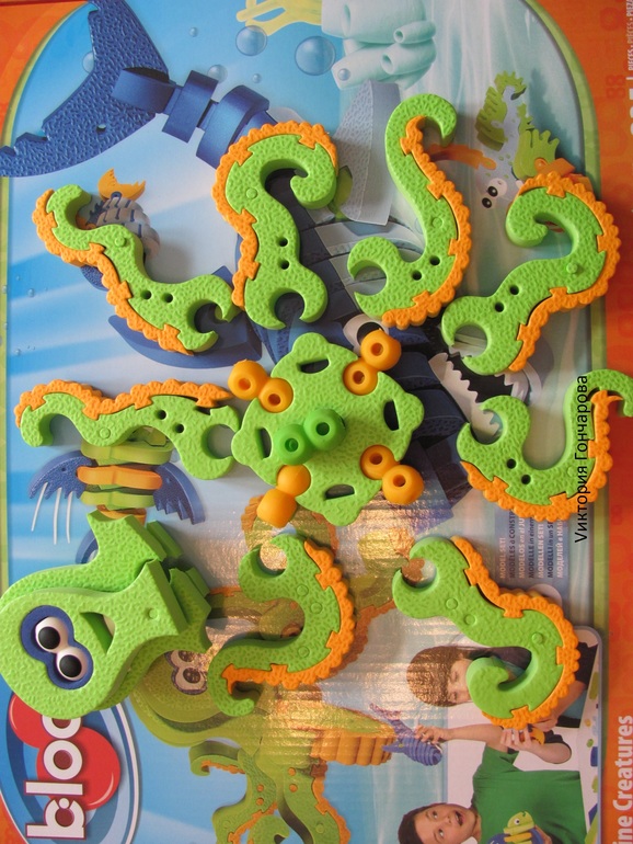 Подобными шарнирными соединениями, похожими на суставы, славится конструктор Zoob. У нас дома такой конструктор стал предметом одной увлекательной эволюционной игры. Родители с несколькими детьми знают, как трудно придумать занятие, которое одновременно увлекало бы отпрысков разных возрастов, ведь то, что нравится семилетнему, трехлетка еще не может сделать. А то, что он может, будет скучно для семилетнего. Но выход есть - придумать игру с очень разными ролями. Например, так: старший собирает фантастических существ из конструктора Zoob, а младшая работает «фактором отбора» и проверяет модели на выживаемость, то есть кидает их на пол и пытается разломать.