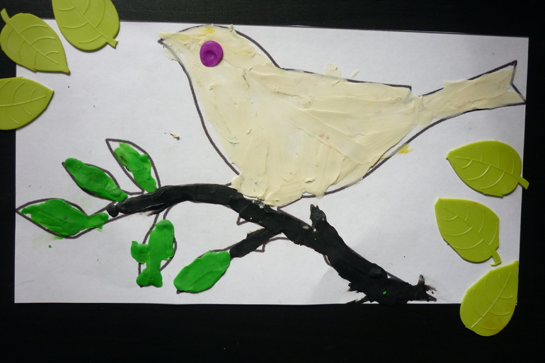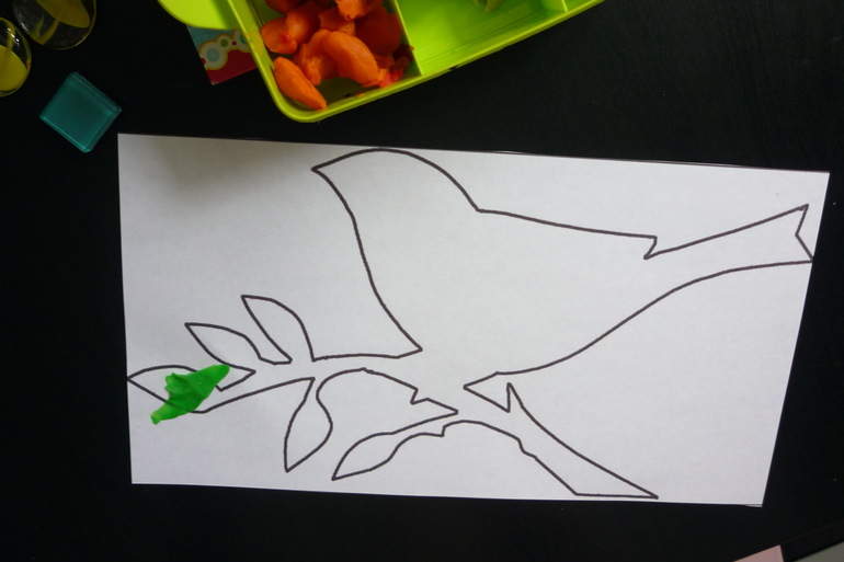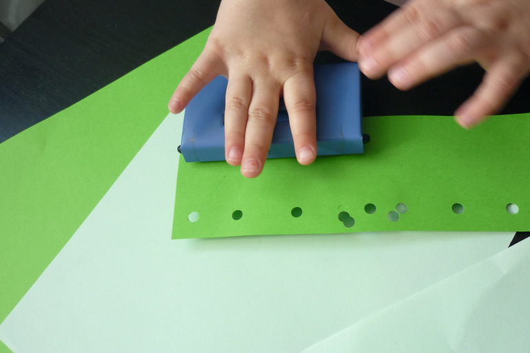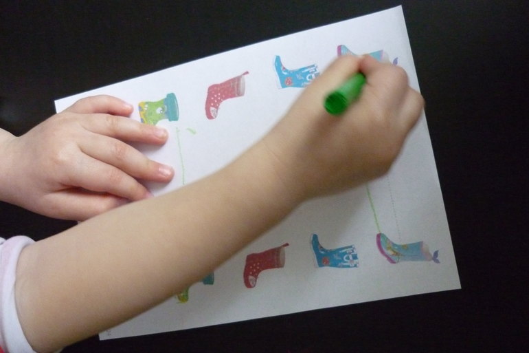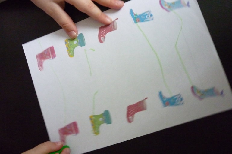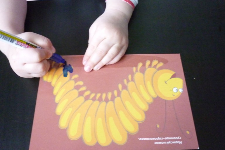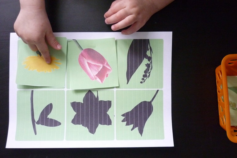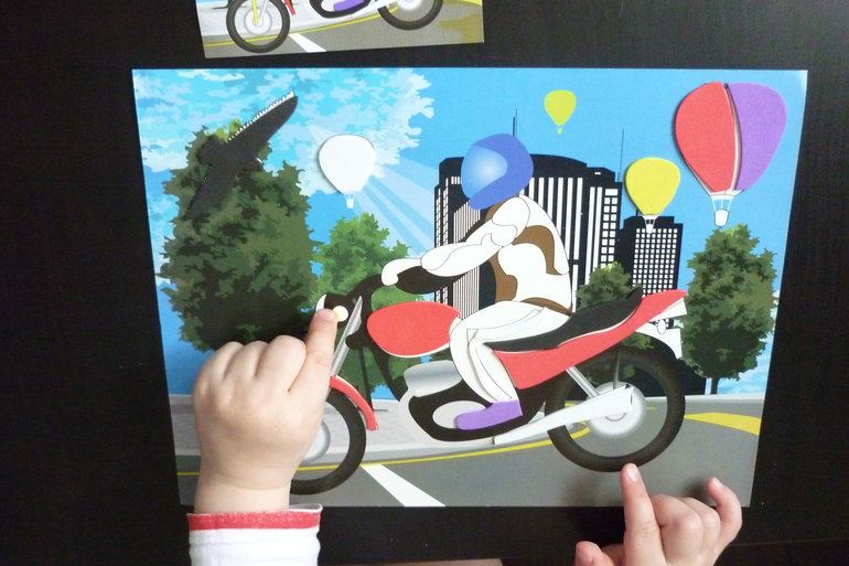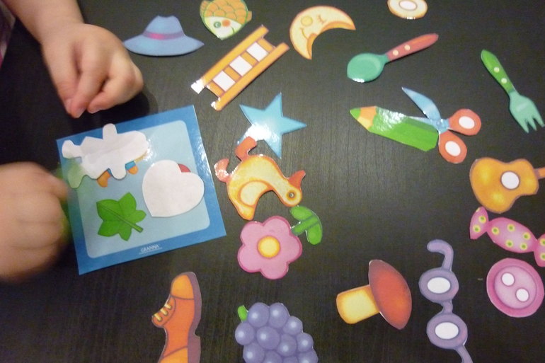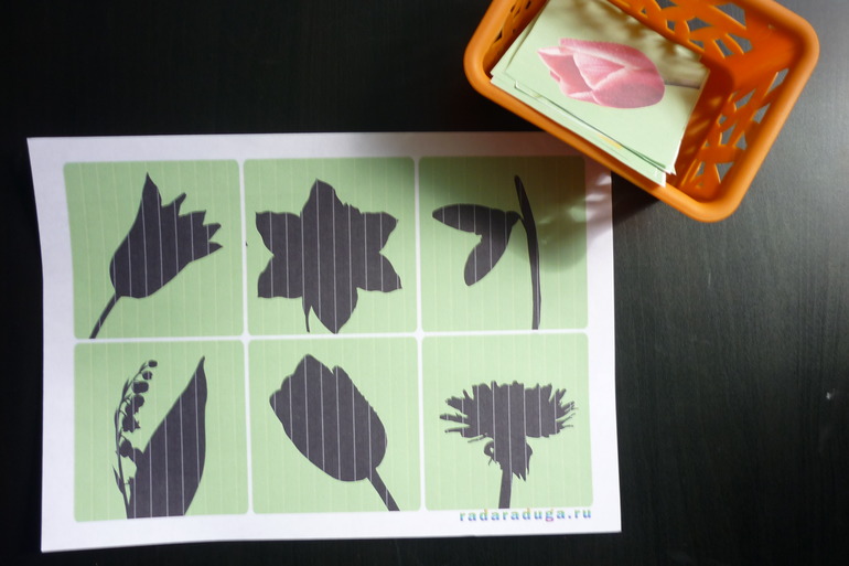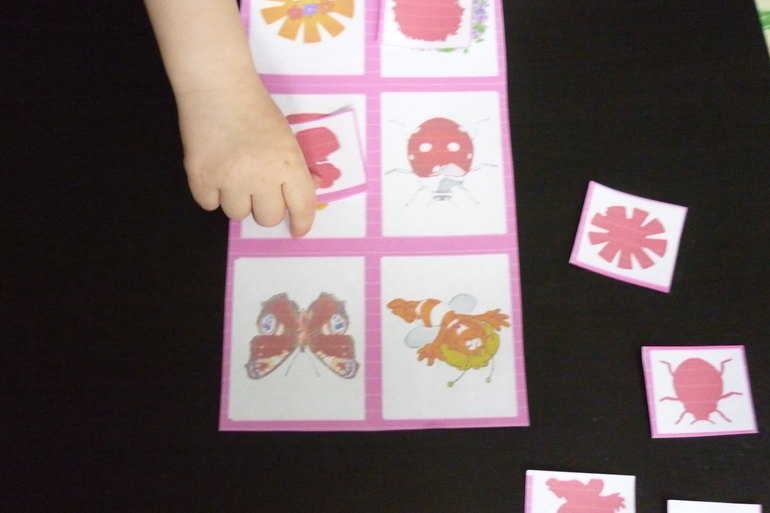 Саша выбрала карточку, затем из вырезаных предметов нужно найти и закрыть картинки на карточке