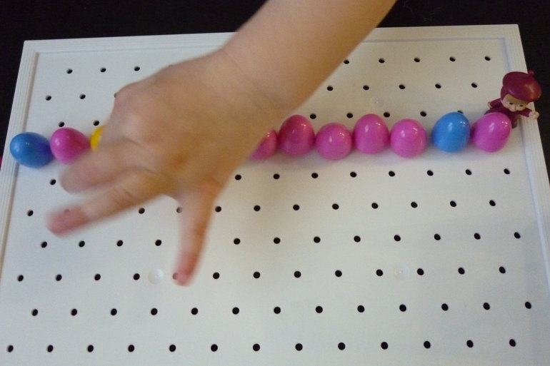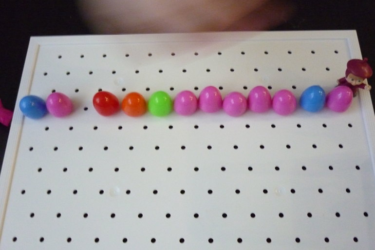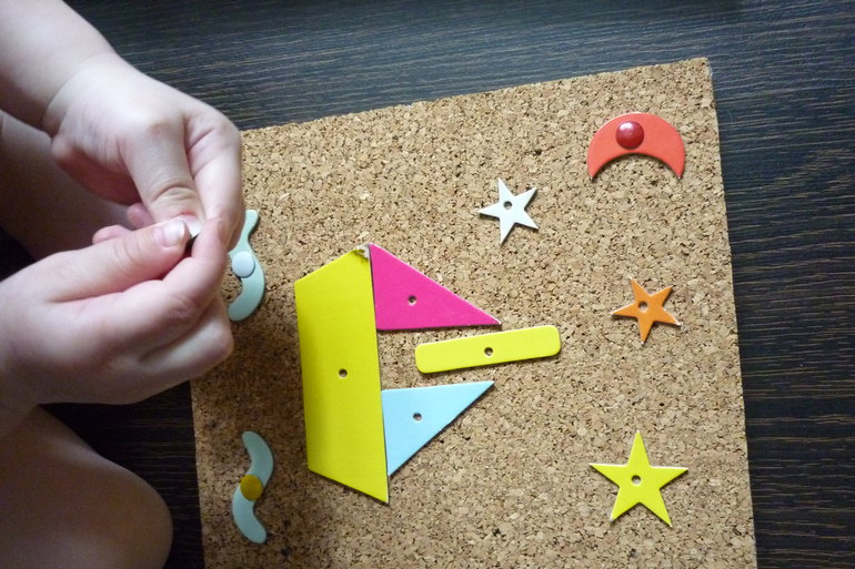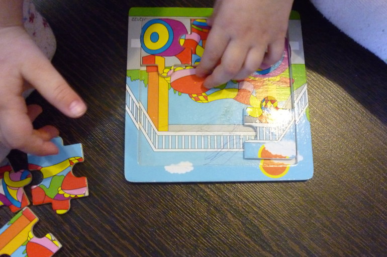 У нас несколько видов мозаики. и Сашуля не особо их любит.может пособирать. и то если я предложу, а сама неее. Но вот на 8 марта дедушка подарил новую...и уже неделю мы в нее играем несколько раз в день. Очень удобно брать ручками и вставлять