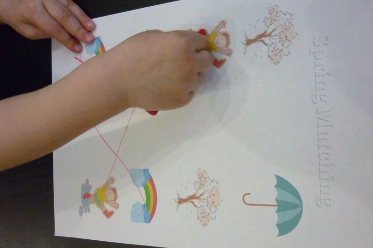 Ребенку необходимо подобрать зонтик к сапожкам, по цвету и "рисунку"